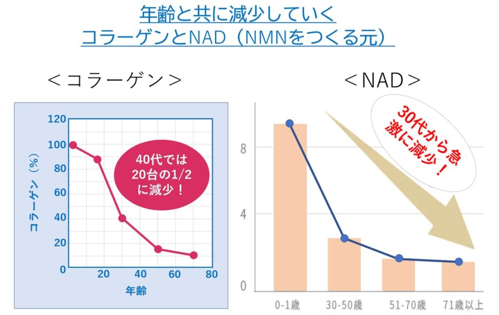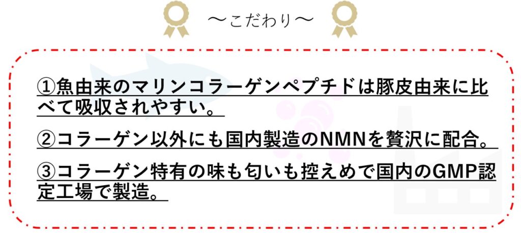 原材料名 魚コラーゲンペプチド、デキストリン、β-ニコチンアミドモノヌクレオチド、コエンザイムQ10(マルトデキストリン、コエンザイムQ10)/ビタミンC、グルコサミン、(一部にゼラチン・えび・かにを含む)